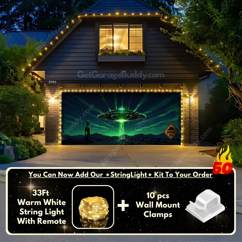 You now have the option to add the GarageBuddy string light kit to your order at 50% Off and turn your garage into a true show stopper. The kit includes 1x 33 ft warm white string light, a remote control, and 10x sticky wall mount clamps. The 2-door garage option comes with 2 string light kits. The lights work on three AA batteries (not included), so you don't need to run around finding electrical outlets.