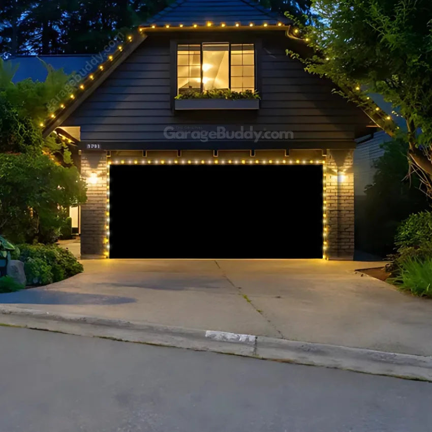 You now have the option to add the GarageBuddy string light kit to your order at 50% Off and turn your garage into a true show stopper. The kit includes 1x 33 ft warm white string light, a remote control, and 10x sticky wall mount clamps. The 2-door garage option comes with 2 string light kits. The lights work on three AA batteries (not included), so you don't need to run around finding electrical outlets.
