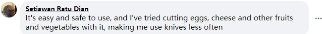 "It's easy and safe to use, and i've tried cutting eggs,cheese and other fruits and vegetables with it, making me use knives less often"