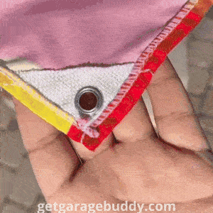GarageBuddy garage covers now have reinforced fabric in the corners and use spur grommets with teeth, which adds 5 times extra strength to the fabric. So you can hang your spooky garage door cover with peace of mind knowing it won’t rip, even if stretched.