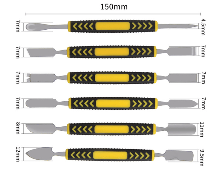 Double-edged design with sharp tips for easy insertion into small crevices and any tight spaces, And the shallow depth will not harm the parts inside. Six-piece set with 12 blades for every repair situation! For all your daily needs.