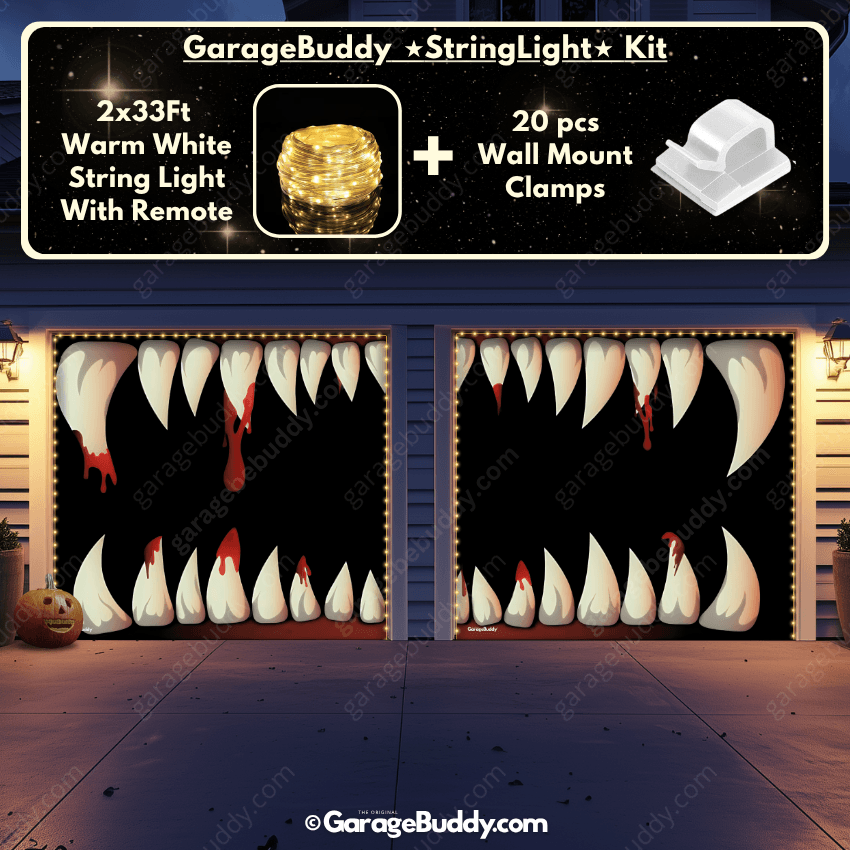You now have the option to add the GarageBuddy string light kit to your order at 50% Off and turn your garage into a true showstopper. The kit includes 1x 33 ft warm white string light, a remote control, and 10x sticky wall mount clamps. The 2-door garage option comes with 2 string light kits. The lights work on three AA batteries (not included), so you don't need to run around finding electrical outlets.