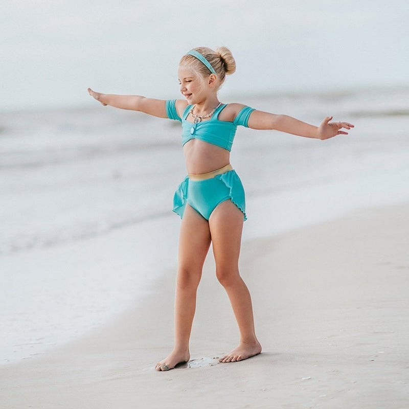 - This Princess Swimsuit Whether playing at the beach, swimming in the pool, attending themed parties or water sports activities, you can make sure your kids are comfortable and protected from the sun in this stylish swimsuit