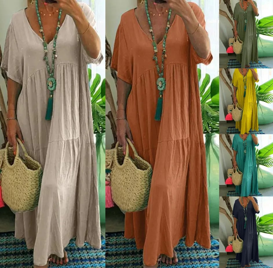 Check out our casual short sleeve maxi dress for women, a perfect choice for beach outings or vintage parties. This dress is made of cotton and linen, for exceptional comfort and durability.